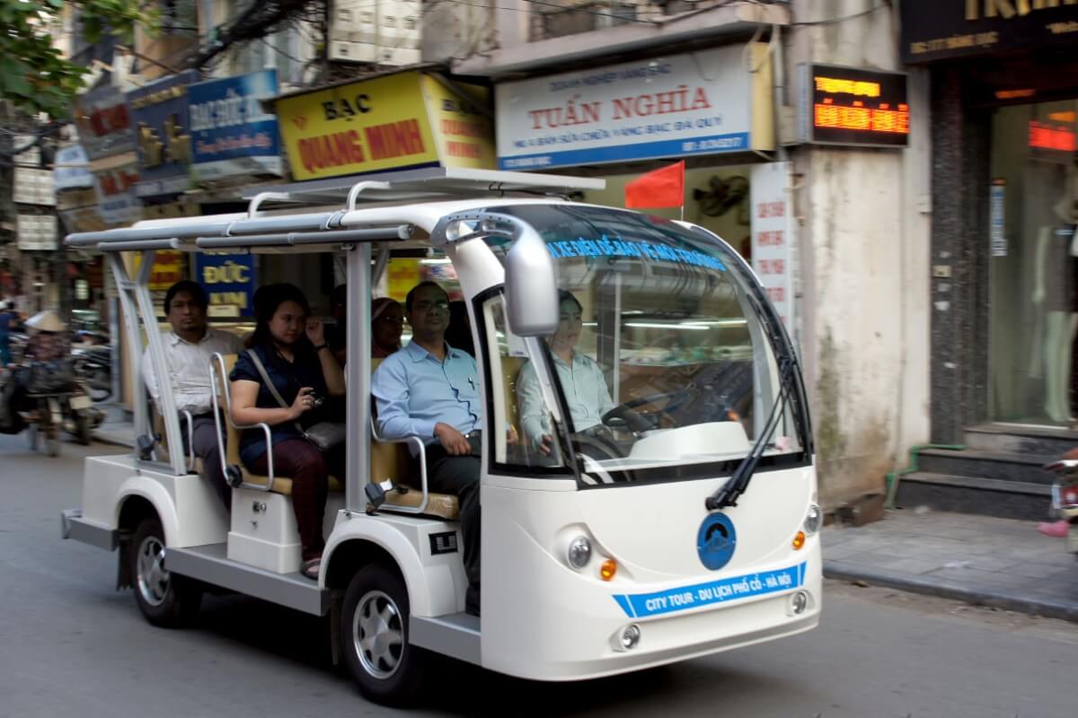For those who prefer comfort without missing detail, Electric Car Night Tours offer a relaxed yet informative Hanoi night tour option. These eco-friendly vehicles operate mainly around the Old Quarter, Hoan Kiem Lake, and nearby cultural zones, making them ideal for evening sightseeing.