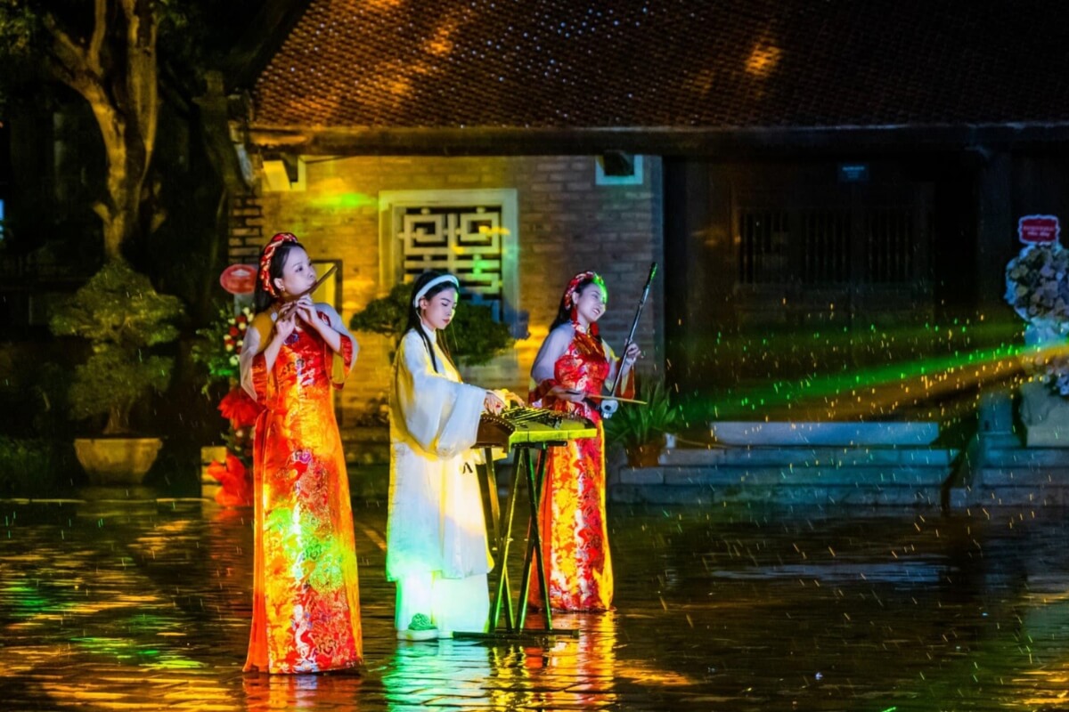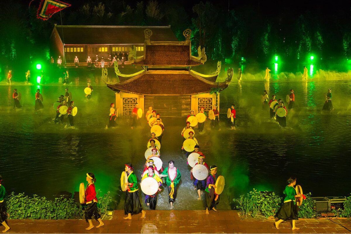 Staged on a vast water surface near Thay Pagoda, The Quintessence of Tonkin is one of northern Vietnam’s most ambitious cultural productions. Hundreds of performers, including local farmers, create a visually stunning portrayal of rural life, Buddhism, seasonal festivals, and traditional music.
