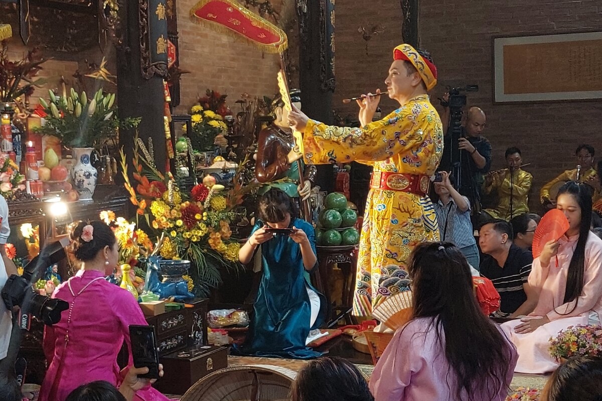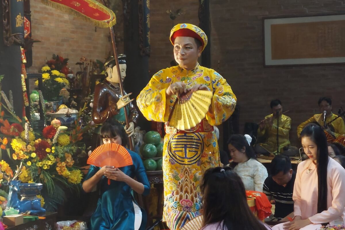 The ritual experience begins with an introduction to the Hầu Đồng ritual and the Mother Goddess belief system. This is followed by the opening ritual featuring a welcoming Chầu Văn performance, incense offerings, ritual items, and a veiling ceremony to invite the deities.