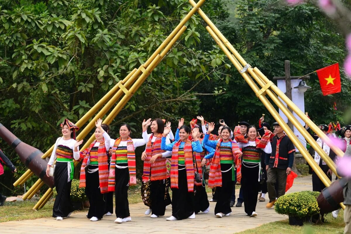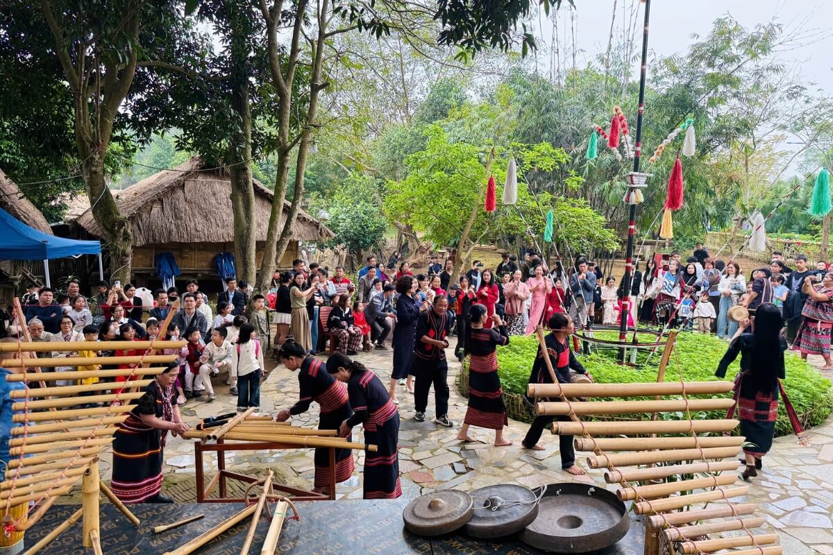 In March 2026, the village hosts a special program titled “Spring and Youth” (March 1–31), featuring more than 100 representatives from 16 ethnic groups across Vietnam. Highlights include the Muong Spring Festival (March 7–8) with the traditional Vi Du ritual for blessings and good fortune, as well as folk performances like “Spring Flowers of Muong Land.” Visitors can also experience the S’tieng Spring blessing ceremony on March 22, cultural shows, brocade fashion displays, and weekend performances celebrating the cultures of the Central Highlands and northern ethnic groups.