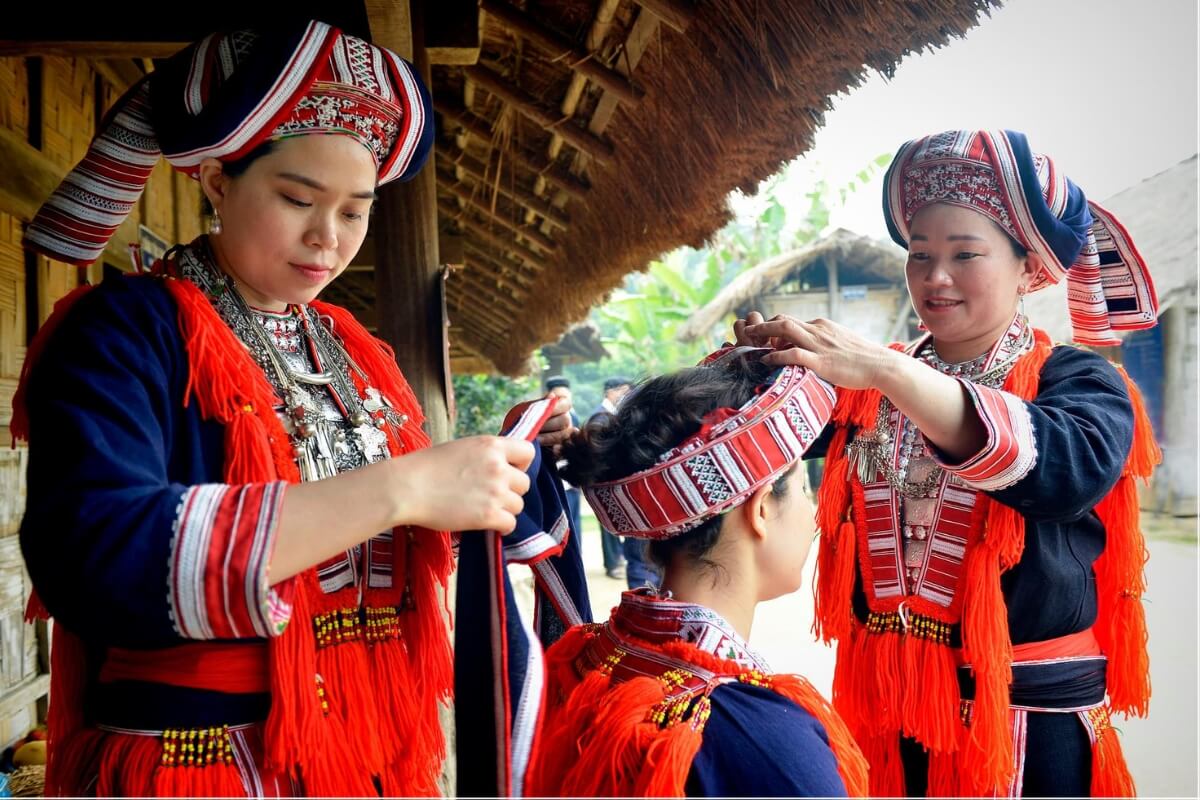 The Dao people are recognized for their vibrant ceremonial costumes and spiritual traditions. In the Vietnam National Village for Ethnic Culture and Tourism, visitors can learn about Dao architecture, rituals, and craftsmanship.