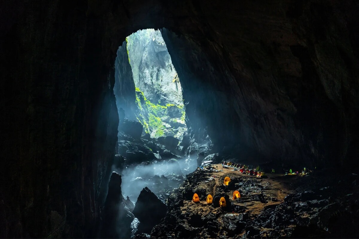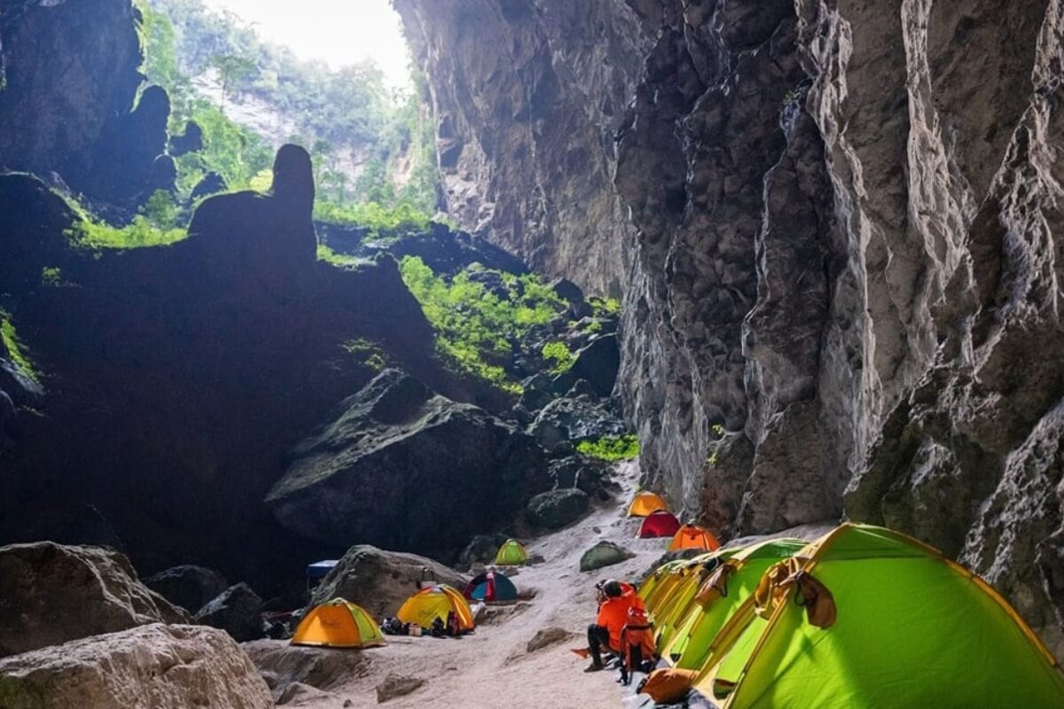 One of the most unforgettable experiences of hang son doong vietnam is spending a night camping inside the cave itself. Campsites are strategically set up near natural skylights, where morning sunlight filters through the enormous ceiling, illuminating the prehistoric landscape. Waking to this spectacular view allows visitors to connect deeply with the untouched beauty of the cave.